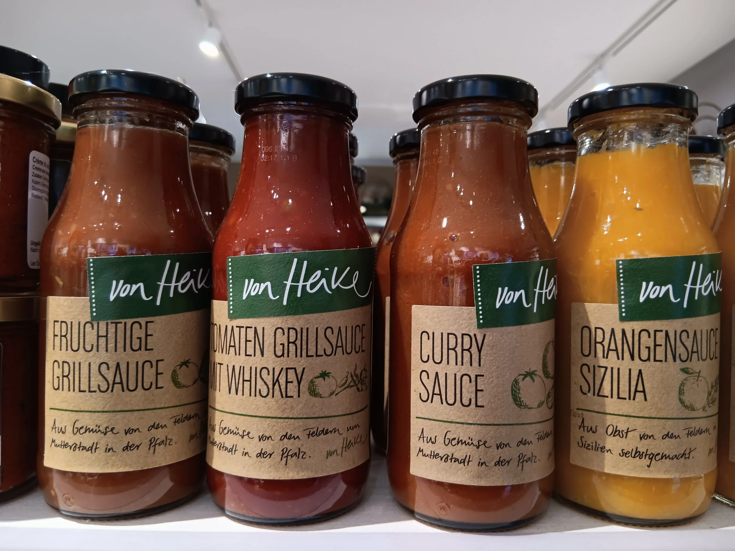 Viele Produkte kommen aus Deutschland, auch von kleineren Herstellern. So findet man hier immer wieder Produkte aus der Region, bspw. von Heike - ein Unternehmen aus Mutterstadt, das Konfitüren, Saucen, Chutneys und vieles mehr herstellt. Aber auch Frankreich und Italien sind vertreten, sowie Portugal und Spanien.